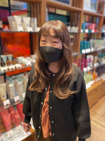 ハイトーンの髪色でないにも関わらず、仕上がりに潤い溢れる透明感がうまれました!綺麗です!