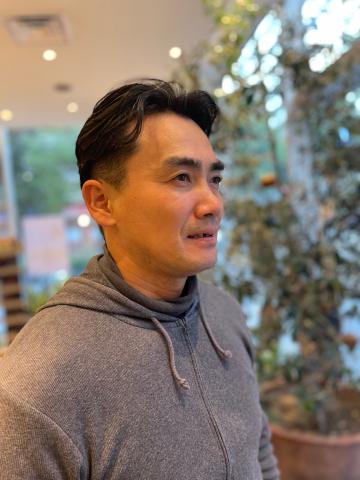 もちろん、ビジネスシーンでは、アップバングに髪をかきあげて、フォーマルな仕上げも可能です。