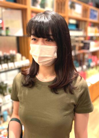 鎖骨下 → 肩レングスにカットして、軽やかな印象のナチュラルスタイルへチェンジ。