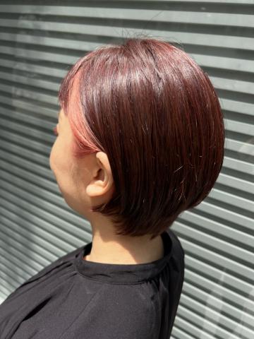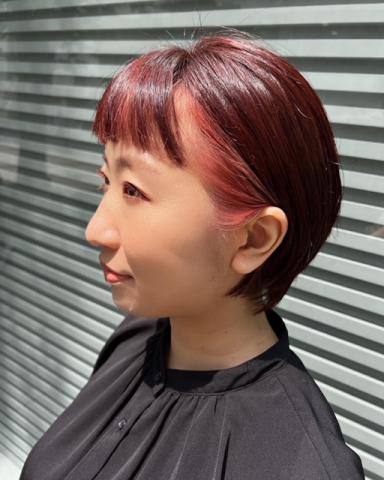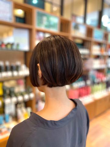 今回は、襟足をスッキリとインナーカット。パツリとした質感のボブスタイルへチェンジ。