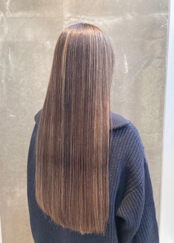 スーパーロングストレートスタイルに、ハイライトカラーでナチュラルなムーブメントをプラス。