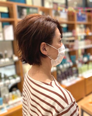 カラーリングは、ベージュブラウンにオレンジをプラスして、やわらかな印象へ。
