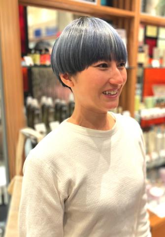 ダブルプロセスでカラーリング。「ブルー × グレー」。フリーハンドで、ザクザク CUT!