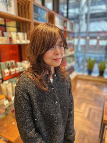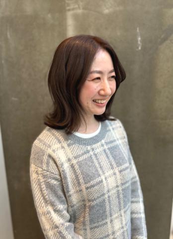 ミディアムスタイルに、大きめカールのホットパーマをのせました。