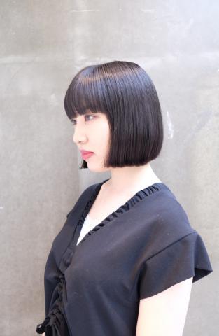 ヘアカラーは、深いヴァイオレットブラウンを選択して、ツヤ髪へ。