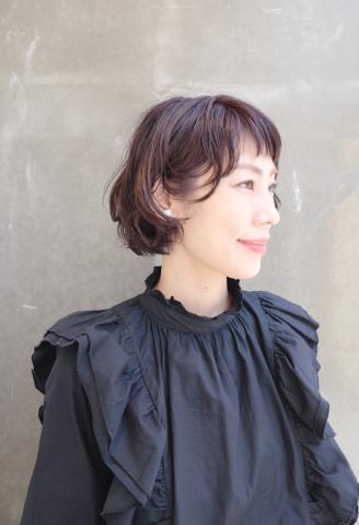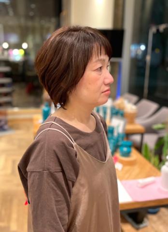 カラーリングにはピンクブラウンを選択。女性らしく、美しく。NEWスタイルの完成です。