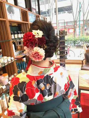 卒業式のヘアセット。袴の着付けでご来店いただきました。感謝です。
