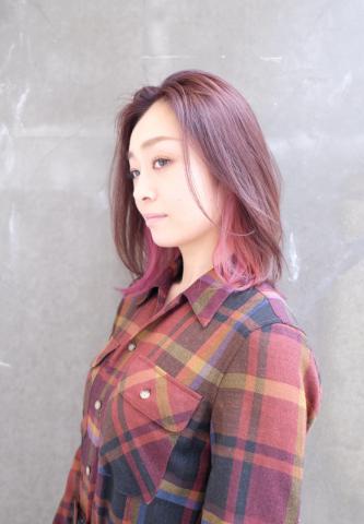 同系色を選ぶことで、ポップで明るい印象に。華やかで遊び心溢れる大人のインナーカラー。