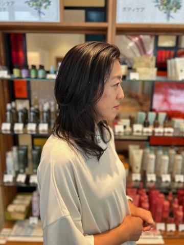 先ずは質感CUTで全体の印象を整えました。しなやかにまとまる髪へ → 髪質改善トリートメント!