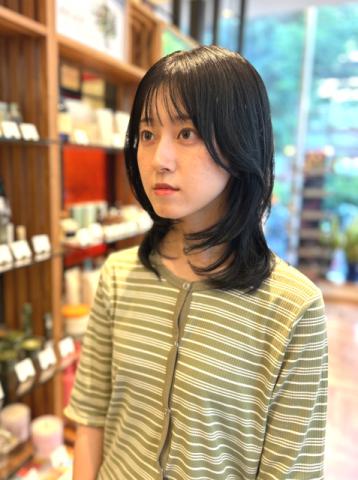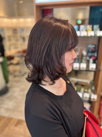 パーマの残り具合に合わせて、肩上レングスにCUTしました。