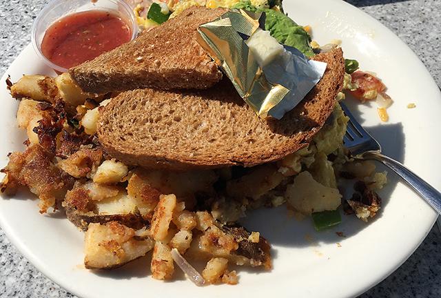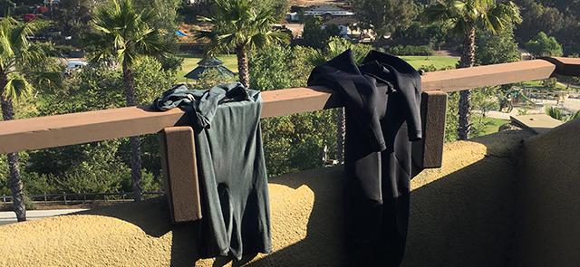 サーフ後、ホテル戻ってウエット干して(この日差しですがフル装備!)からスワミーズカフェで遅めの朝食