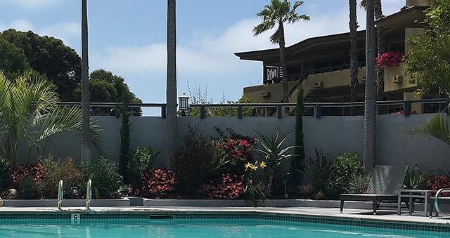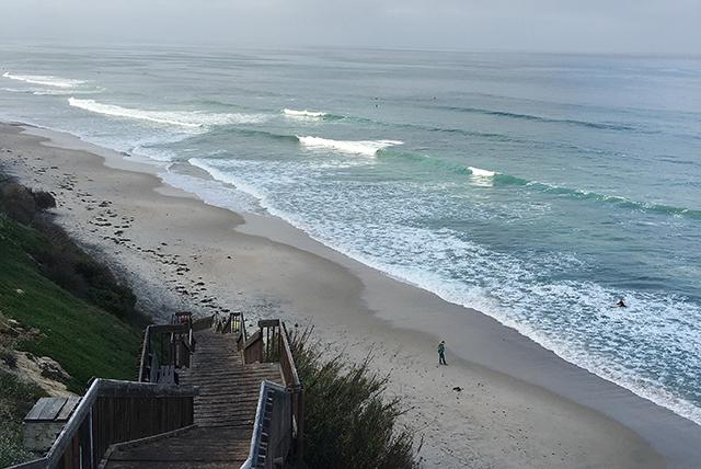 夕方、風が止んでる???(ホテルのアメリカ国旗とカリフォルニア州旗がはためいていない)のでムーンライトビーチ見てみると、、あれ??結構イイ波
