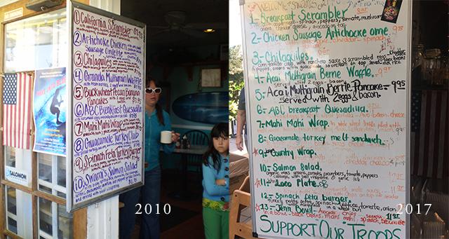 多分メニューボードもお店の細部に至るまで初めて来た時(2010年)から1ミリも変わっていません。(変わってました。。。写真参照ください。余談ですがなんと同じカメラで撮影しております)