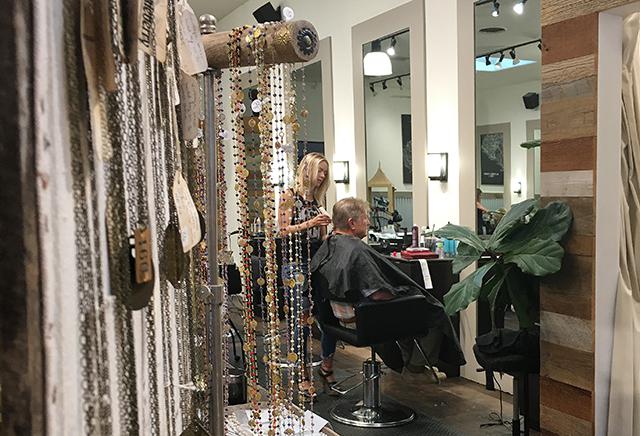 入り口に雑貨・アクセサリーが置いてあり、気軽に入れる雰囲気で、奥にセット面があります。