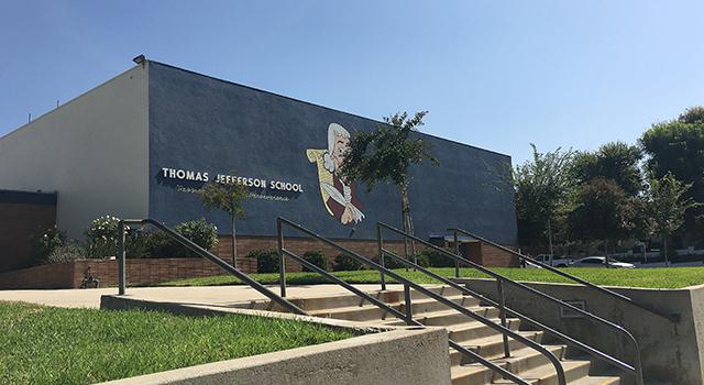 トーマスジェファーソンエレメンタリースクール(小学校)へ向かいます。