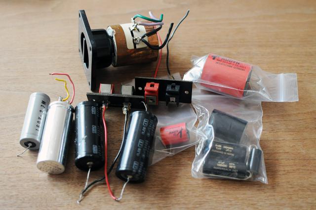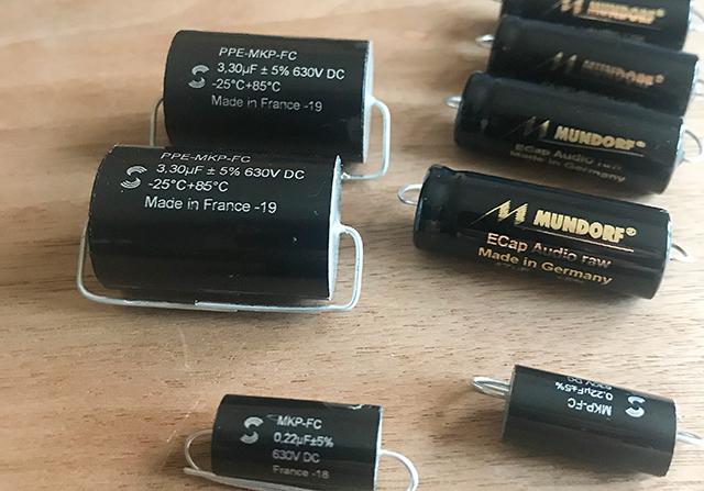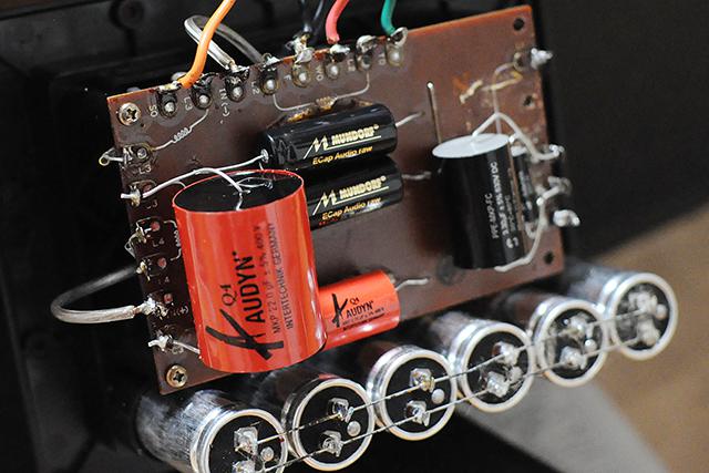 47μFを4個(これはフィルムコンデンサーは高額だったので、電解コンデンサーで代用。でもドイツ Mundorfの無極性電解コンデンサ)