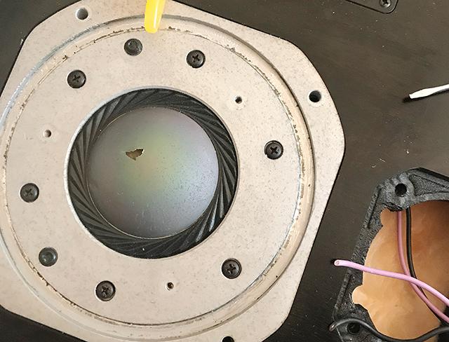 このセンモニの最大の特徴といってもいいスコーカーのベリリウム振動板に穴を開けてしまいました・・・