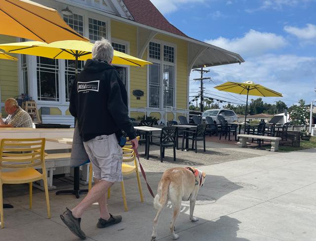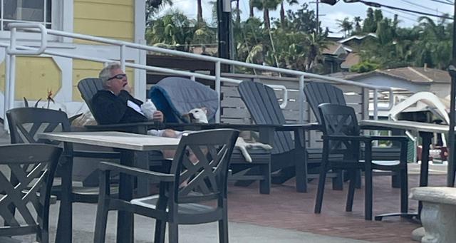 ミッチズのパーカ着たおじいさんが犬連れてのんびりしてた。犬もまるで客の一部なのです!