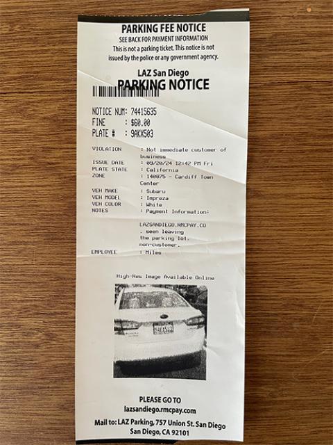 ケサディーヤは9.5ドルにも関わらず、すごいボリュームで完食できず、ケサディーヤをTo Goして車に戻ると、、、なんか不穏な紙がワイパーに挟まってる。